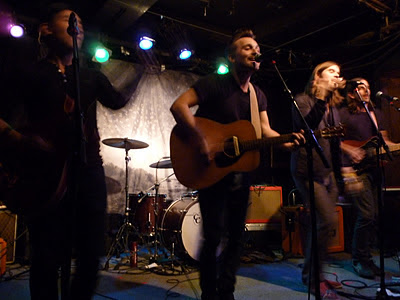 (L to R, c Julia Markowitz: Tim Kim, Tim Wilson, Pete Wilson, Ryan Carbary) They’re not just blindly and uplifting, nor depressing and goth, and sport a mean maraca. Leading with “I Was Born to Love Her” off their latest EP, Fathers Be Kind, acoustic quartet Ivan and Alyosha settled into the somewhat compact stage at Great Scott in Allston. Intimate, though tight, the venue proved ideal for harmonies, handclapping, and hushed melodies; also ideal for trying out a handful of new songs on the crowd. While we don’t have a recording – and you’re certainly going to have to wait until their debut LP next Spring to hear the new ones – let us just state that you missed moments replete with whistle solos and simple country hometown-ness (whatever that may be); a crowd giving in to claps and modest guitar solos; and brothers Tim and Pete Wilson sharing a mic, with the former attempting to kiss and embarrass the latter (c’mon, it’s just one on the forehead!). Wrapping up with crowd-pleasing “Fathers Be Kind” and an especially playful “Glorify,” their set, though brief, should betoken good things to come for the congenial, down-to-earth foursome. We suggest getting on this wagon early; and picking up a sweet signed tee, nice!
