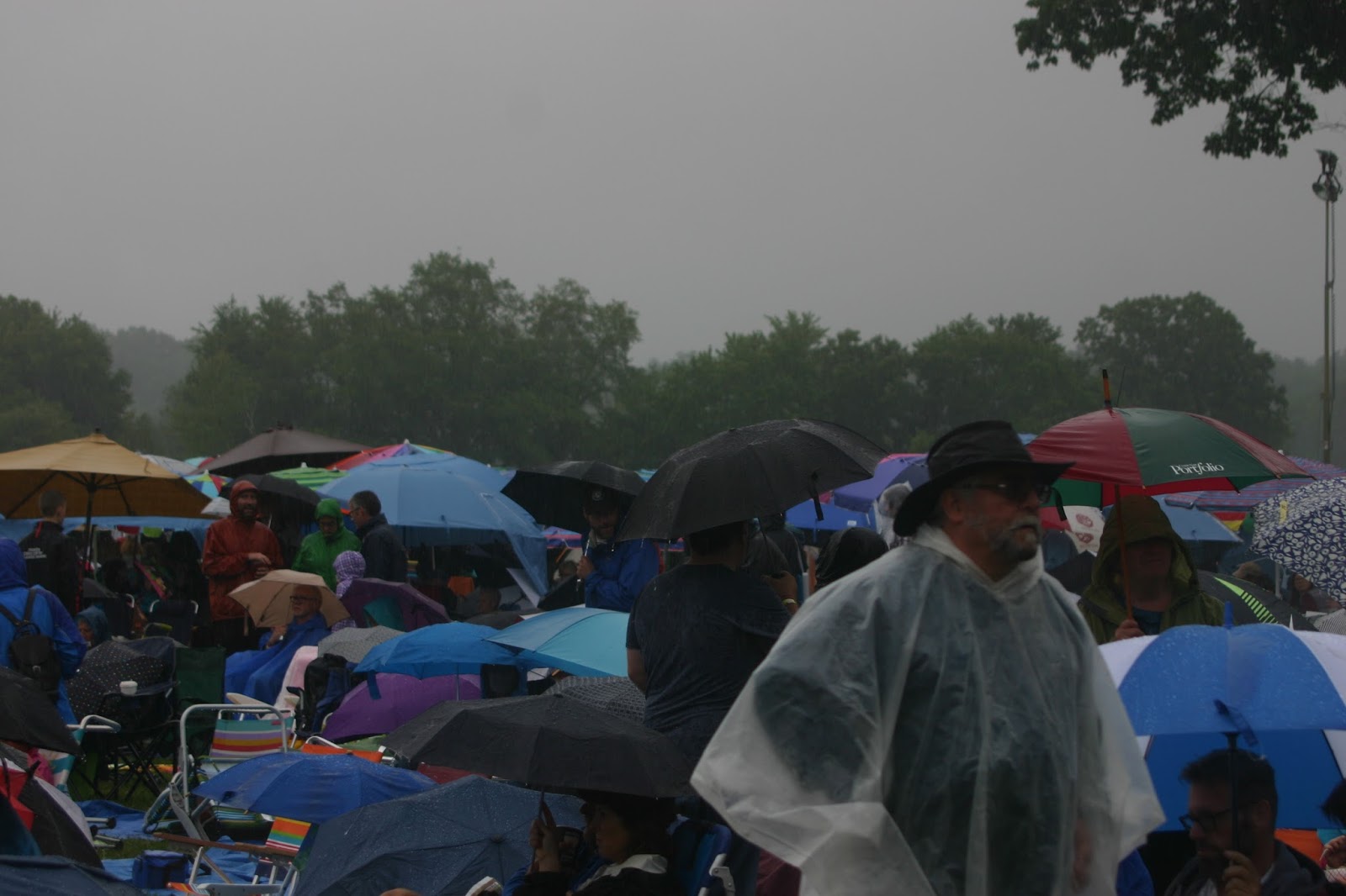 The skies, the skies are falling! It made like it wanted to rain… and then it rained. Of course. And we were ill-equipped for rain weather (tee shirt and shorts). Of course.
