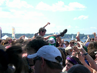 These fine young chaps are Delta Spirit (well, 2/5 of them). That’s lead-man Matt Vasquez with the hair in his eyes. Probably the most direct way to describe them is to say they play rock; pure, loud, unabashed rock. It’s our first listen to the remaining third of the collaboration known as Middle Brother, and if you didn’t feel the raw power of “Ransom Man” that day, alas, you probably never will. Needless to say, the guys laid it into the crowd after a few songs and Mr. Vasquez shred the bejesus out of “People C’mon” vocally. We’d love to say that was the highlight of our day but to be honest, it really belonged to this lass, and probably always did: