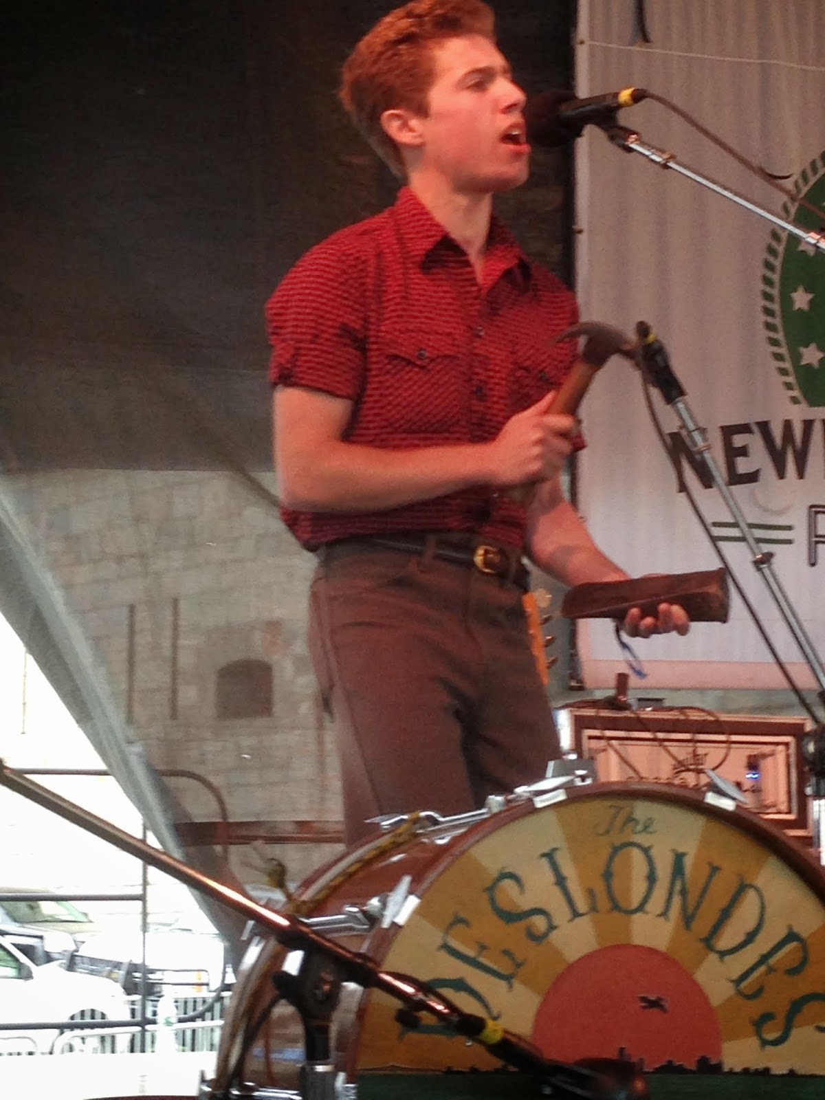 Deslondes here, whom apparently feel a railroad spike is the ideal percussive instrument. Yes, it’s quite cool. We had to take a couple pictures of this, as, how often is a band prepared to set up on a train when planes abound nowadays?