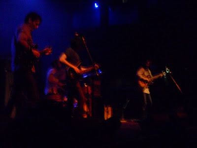 One of our favorite (relative) unknowns, Austin, Texans White Denim took the part of first opener to Manchester Orchestra. The rock quartet – that’s how you know they’re tough to describe, basically ‘rock’ must suffice – pounded out a graceful act, starting in on “Street of Joy,” with vocalist James Petralli pulling from the mic, filling the air with the color in his voice. (Check out that awesome blur effect in the pic c/o Matt Lacorazza; L to R – Austin Jenkins, Josh Block, Steve Terebecki, James Petralli) The foursome cut a clean, gorgeous performance on this one, and drummer Josh Block enjoyed the heck out of bashing through “Bess St.” And when Petralli gets down and dirty on a solo during “River to Consider,” then we know we’re in love. The brief set – a bit less than 30 minutes total – was certainly worth the catching, and included mostly songs from their new album D, as well as their older “Shake Shake Shake.” We’ve got to be honest here: 30 minutes is not quite enough for these guys. We’re hoping their upcoming tour will find a better audience than they found in the Manchester Orchestrites; the headliner, in our opinion, doesn’t seem the most natural pairing in band dynamics and philosophies. And another moment of honesty: the dead serious MO (and The Dear Hunter, too) don’t get our rocks off quite as the energetic, chameleon Denim does. Our verdict? If you appreciate dynamic songwriting that flits to-and-fro, and don’t want another drummer banging on the beat, catch them with Wilco in the SW (wait, they’re touring with Wilco?? holy cripes, time to relocate). Wonderful set, with our only regret being that they certainly needed more room to flesh out their solos. Oh, and hopefully they’ll have time for some pieces from Fits.